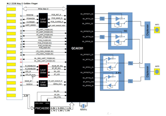 FG8291MPRX-00. | QCA6391(QCA1064)、M.2 2230 Eキー、2×2,802.11a / b / g / n / ax BT5.1dbs 2g&5g |