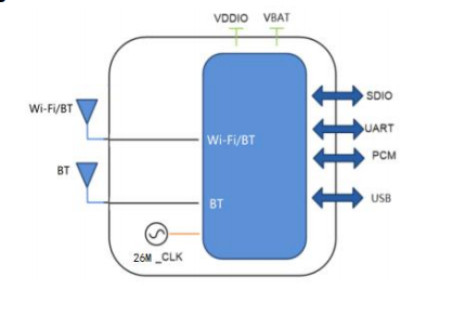 USB2.0、SDIO 2.0、UART、PCMをサポートします。